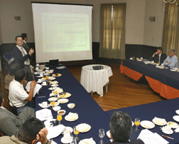 Reunión con agentes de aduana. El Jefe de Informática de TPS, Víctor Mercado, explica a los agentes de aduana la nueva modalidad de tramitación anticipada de documentos vía web, durante la reunión destinada a sumar nuevos usuarios a este sistema.